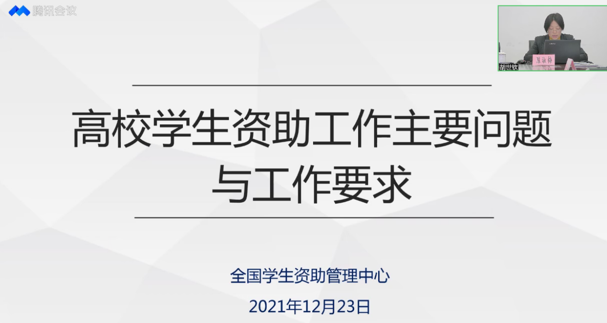 為進一步貫徹落實好國家資助政策,規(guī)范高校學(xué)生資助工作,創(chuàng)新資助工作方式方法,提升學(xué)生資助工作人員業(yè)務(wù)水平,教育部全國學(xué)生資助管理中心于12月23日下午以視頻會議的形式組織召開了2021年高校資助業(yè)務(wù)線上培訓(xùn)會。我校學(xué)生資助工作辦公室工作人員、學(xué)生處負責(zé)學(xué)生資助工作的人員參加了培訓(xùn)。