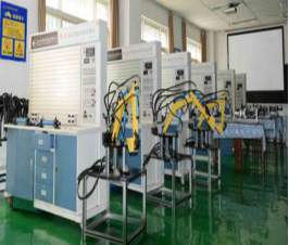 參觀前,在兩校系主任和老師對各自專業的基本概括、師資力量和實驗室建設等情況作了簡短的交流之后。機電學院智能制造系的實驗實訓中心主任楊莉華向我們依次介紹了液壓傳動與控制實訓室、數控設備維修實訓室、數控加工車間、模具加工實訓室和機加工車間等實訓室的設備、開展的實訓項目和學科競賽情況,其中著重介紹了液壓傳動與控制實訓室,該實驗室主要承擔機械工程及自動化、機電一體化(自動控制)專業方向的液壓傳動課程的實驗與實訓。實驗室面積約為202m2,擁有YZ型液壓實訓操作臺16臺,QCS系列液壓教學實驗臺3臺,如果再配置上有關的傳感器、二次儀表及測控軟件,大多數實驗可以實現計算機輔助測試(CAT),還可以用PLC(可編程控制器)實現對液壓系統的自動控制,使學生不僅可以掌握PLC基本指令與編程方法,還可以培養學生調試、維護和對機床電氣控制系統進行改進;同時還可以拓展學生設計、調試PLC控制系統籌技能水平。