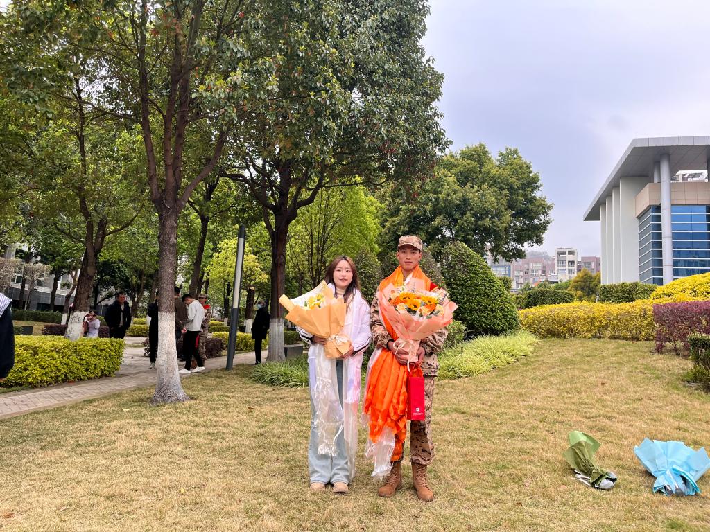 澤郎李羅同學(xué)身著嶄新作訓(xùn)服,胸前佩戴“光榮入伍”紅花,難掩激動(dòng)之情:“從小我就向往軍營(yíng),感謝學(xué)院的培養(yǎng)和師友的支持。我一定不負(fù)囑托,用所學(xué)知識(shí)為強(qiáng)軍事業(yè)貢獻(xiàn)力量,為學(xué)院爭(zhēng)光!”言語鏗鏘,盡顯青年報(bào)國(guó)赤誠(chéng)。