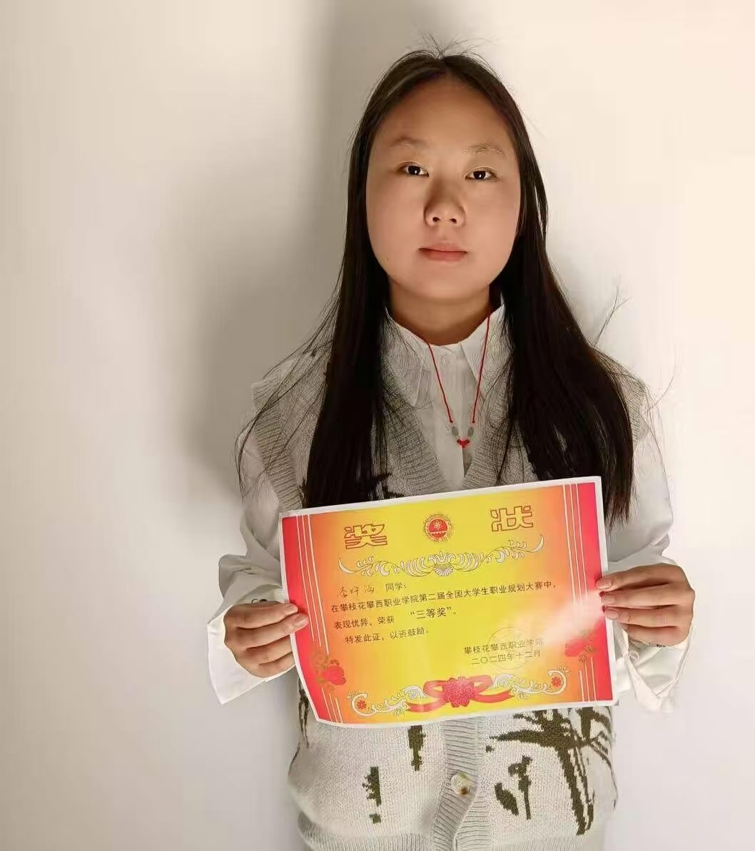2024年11月30日,在學校舉行全國大學生職業規劃大賽校賽中,我院學生李燁涵賽前準備充分,賽中的主題陳述環節語言生動、儀態大方,精神飽滿,展示了健康管理學院學生的青春風采。最終李燁涵同學榮獲“攀西職業學院全國大學生職業規劃大賽預選賽”三等獎。