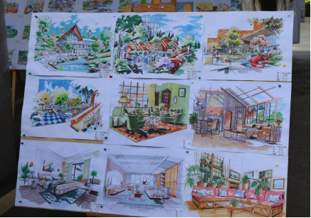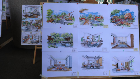 插畫奇幻天地:插畫設計展區打開腦洞,走進奇妙的插畫世界!精彩故事演繹:一個個可愛的IP形象、一段段引人入勝的插畫故事,用藝術語言講述著創作者的奇思妙想。 風格多元碰撞:清新治愈的水彩插畫、時尚潮流的扁平插畫、充滿韻味的國風插畫,風格各異,精彩紛呈。通過此次聯展,同學們仿佛手繪時光長廊,效果圖表現技法展區一支畫筆,一張畫紙,勾勒真實與想象的橋梁!空間光影盛宴,細膩的建筑透視圖、質感滿滿的室內效果圖,用馬克筆、水彩重現空間溫度!場景速寫魅力,街頭巷尾、自然景觀的即興創作,捕捉瞬間靈感,感受手繪的獨特生命力。