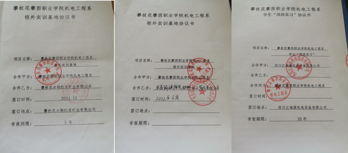 我系現建有機加工、焊工、液壓與氣動、PLC、CAD/電腦輔助設計、3D打印、汽車發動機、汽車鈑金噴涂等實訓室,分別與東方鈦業公司、米易鑫亞汽修廠、四川江海源機電設備公司、攀枝花水鋼紅發礦業有限公司、米易瑞琪陶瓷材料加工有限責任公簽訂校外實訓基地合同。