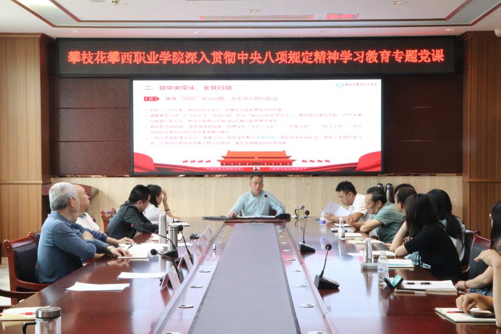 5月29日,攀枝花攀西職業學院舉行深入貫徹中央八項規定精神學習教育專題黨課。學校副書記、執行校長趙海…